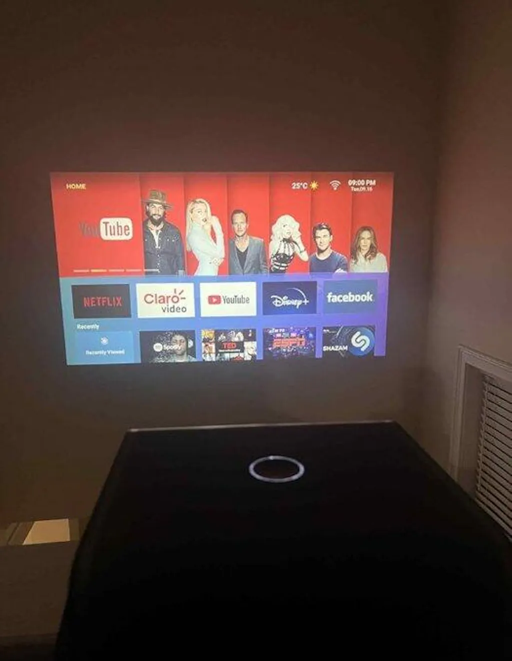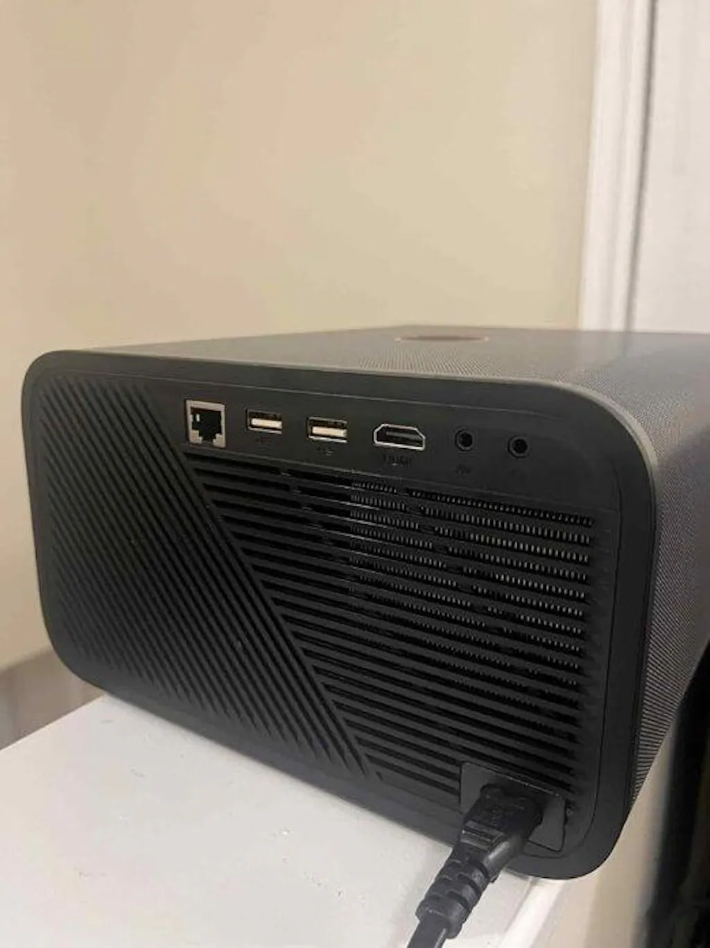 This projector’s picture looks sharp and colorful, and it works well in both light and dark rooms. It’s easy to use with the power button and the remote it comes with. Connecting to WiFi was quick, and the built in apps make it simple to download and open streaming apps without needing extra devices. The fan venting is designed well, it doesn’t get too hot and is easy to push open and keep clean. The sound is decent for everyday use, and the auto keystone correction saves a lot of setup time. I’ve mostly used it to watch movies, and it runs smoothly every time. In the photos and videos I took, it was daytime in my living room, but it looks even better at night or in the my basement. I also tried it outside for a backyard movie night, and it worked great. Easy setup, good sound, and clear picture make it perfect for family nights.